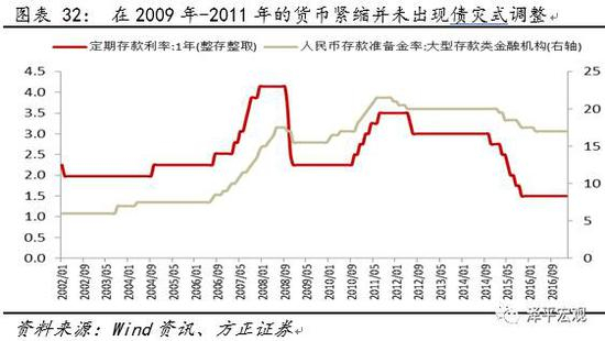 与美国及日本债券市场相比,我国的债灾发生条件略显严格,从M2/GDP的上升趋势来看,我国在近些年的经济增长,有相当一部分要得益于货币放水的政策,然而,我们在2009年-2011年的货币紧缩政策虽然引致了当时的债券市场下跌,但并未出现债灾式的影响。
