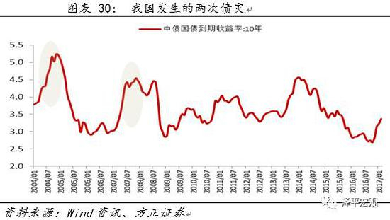 按照相同的标准(当期收益率相对过去一年的平均收益率的升幅是否超过100bp或是否超过30%),我国债灾在过去的15年间发生过两次。一次是2003年8月-2004年9月,另一次是2007年1月-2007年10月。