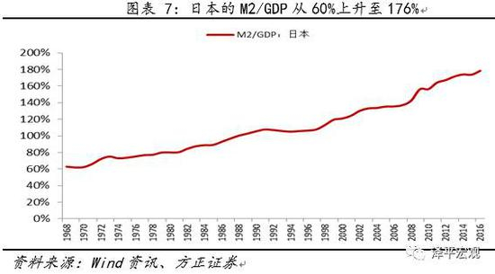 对于日本来说,似乎调控政策的历史就是一部凯恩斯经济学史,70年代以来,日本的M2/GDP从60%上升至176%,这也意味着在日本经济长时期衰退的过程当中,凯恩斯主义一直在货币当局的调控思路中占据着不低的位置。