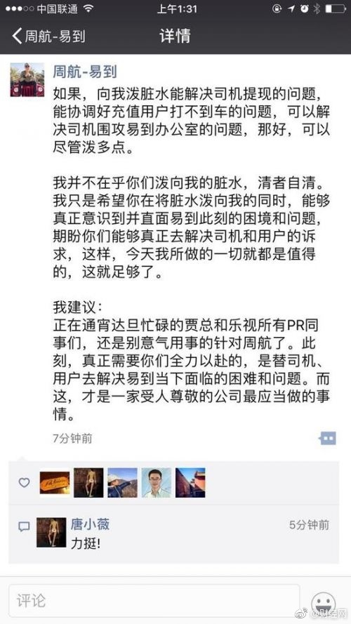 @向小田:易到的官方声明,看水平似乎是实习生写的。不仅没有澄清真相,反而还搞了个乌龙。PR一塌糊涂。