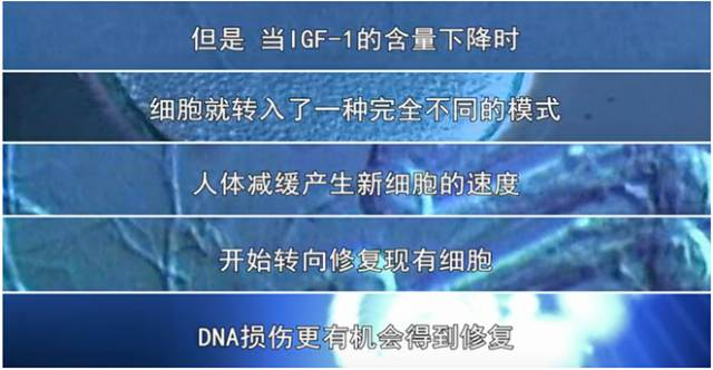 更重要的是,他体内的一种致癌因子(IGF-1)的含量下降50%。