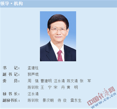 中国长安网“领导·机构”栏目截图。