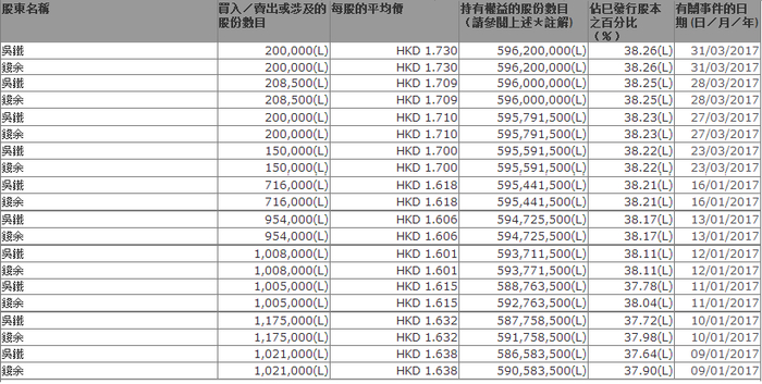 发展到3月31日,吴铁3个月内合计增持10余次,其变动后持有权益以扩大至5.962亿股,于公司已发行股份占比38.26%。