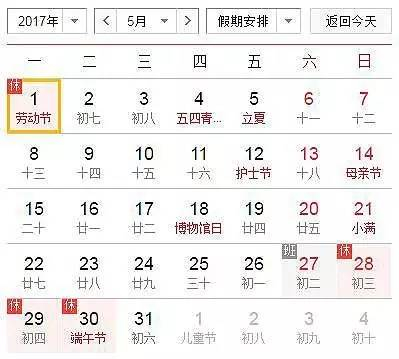 “5月1日(星期一,劳动节)放假,与周末连休。”