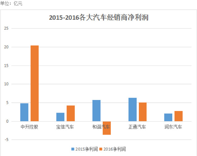 以下是几家上市公司2015-2016年销售汽车的总收入及净利润情况表: