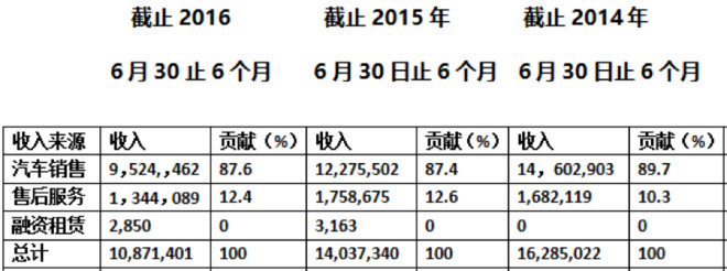 销售汽车以及保险业务,每卖出一辆车可从中收取利润。2016年销售汽车收入高达228亿,同比增长10%。