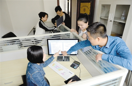 ▲ 4月18日,客户在江西省分宜县小微服务有限公司了解倒贷流程。该公司在商务、金融办直接监管下开展企业银行倒贷业务,通过放款前与银行签订续贷承诺函,既可以解决中小企业银行贷款到期转贷难,又可以规范引导民间资本市场有序发展。 王敏龙摄