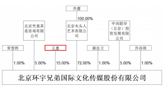 环宇兄弟的股权信息显示,郭德纲妻子王惠是环宇兄弟第二大股东,持股15%。