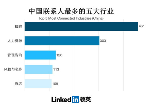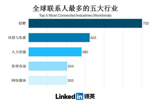 从全球用户的行业和职业属性分布来看,人力资源、金融、管理咨询、网络媒体的用户连接度最为广泛,与之相对应的人力资源、产品管理、市场咨询等职位属性也成为用户最为集中的领域。
