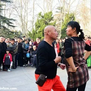▲2017年2月18日,郑州人民公园中心广场内,“双枪老大妈”王玲芝与同伴跳起他们自创的“逆天摇摆抽筋舞”,引数百人围观,而现场的快手直播更是受到全国各地舞友的热捧。(视觉中国/图)