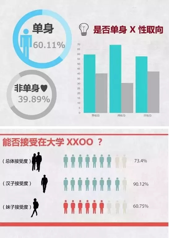 接受调查的大学生中60.5%接受性解放、性自由;67.1%接受婚前性行为,近七成大学生接受未婚同居行为。