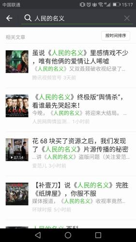 微信搜索“人民的名义”相关文章截图