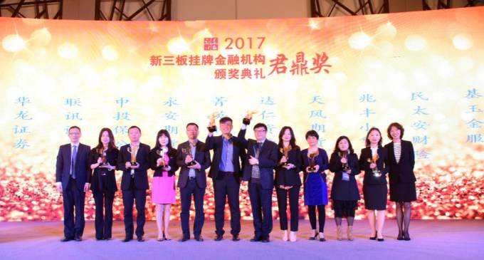 2017中国新三板做市峰会的最后环节——“2017新三板挂牌金融机构君鼎奖”颁奖典礼。