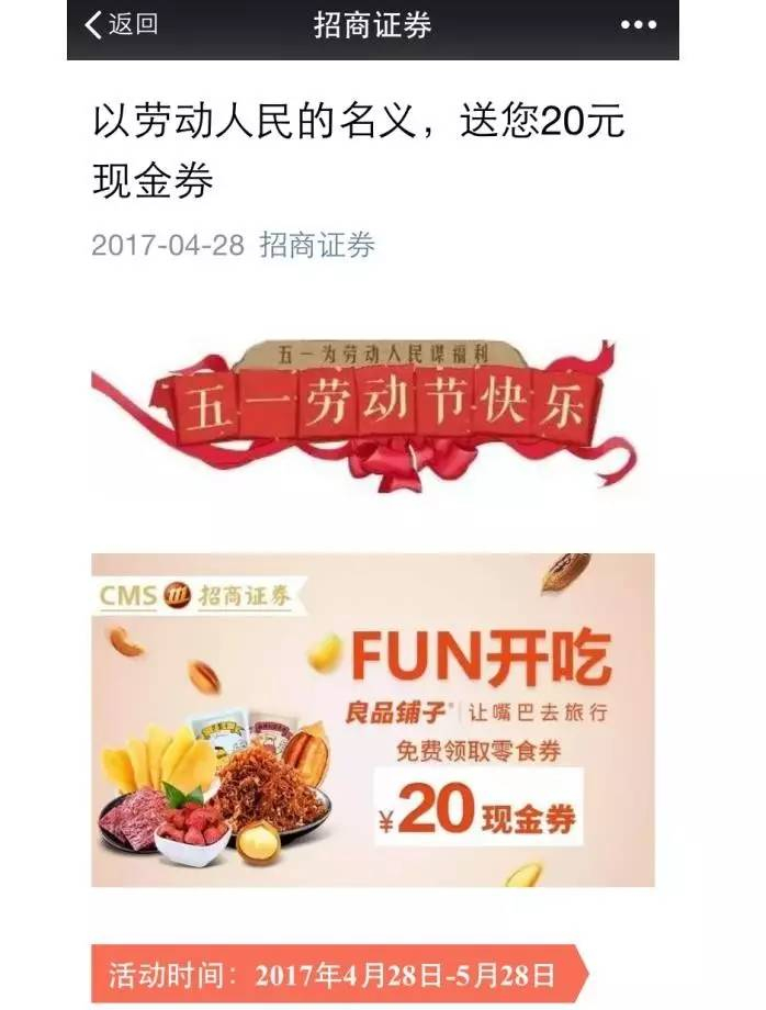 《人民的名义》入戏很深的还有招商证券!这家券商说了,“以劳动人民的名义,送您20元现金券”,你说实惠不实惠?
