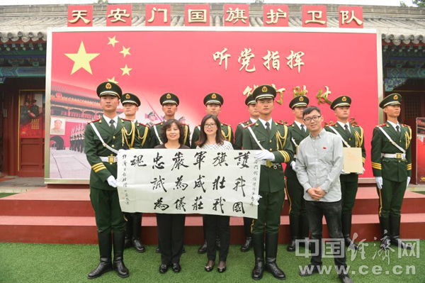向天安门国旗护卫队赠送书法作品(高兴贵摄)