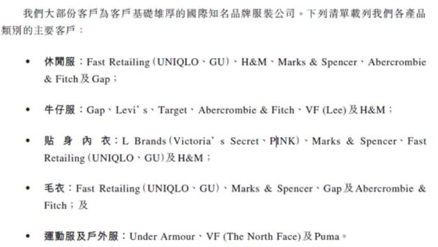 从休闲品牌来看,优衣库、H&M、GAP、Abercrombie&Fitch等是晶苑集团的客户。