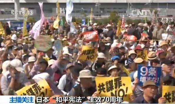 然而近年来,安倍政府一再表达修宪的野心,试图重获交战权,使日本成为所谓的正常国家,这引起日本民众的强烈不满。昨天,在日本“和平宪法”生效70周年纪念日,日本民间团体举行集会活动,抗议安倍政府的修宪举动,表达捍卫“和平宪法”的决心。
