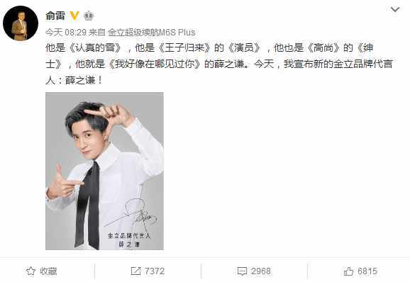 如果说冯小刚代言是对金立品牌的重装,让金立的品牌形象向“高端品质”大幅演进,那么薛之谦的代言则延展了金立的时尚品牌价值,为金立扩大了在年轻人中的知名度和影响力。