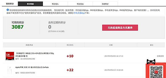 很多用户都容易忽略天猫积分的存在。每当完成一笔交易,天猫店家就会赠送一笔价值不等的天猫积分。