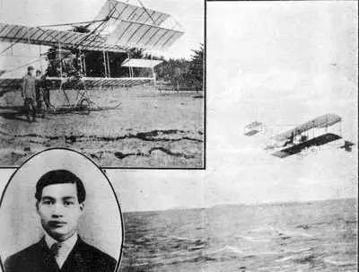 1909年9月21日,一架升降舵装设在飞机前部的鸭式布局的轻型飞机,在美国一个农场崎岖不平的地面上起飞。这驾简陋飞机的驾驶者就是冯如――中国航空之父,首位驾驶自制飞机上天的中国人。冯如首次试飞成功,标志着中国航空史的开端。1912年冯如在飞行表演时因飞机失事殉职,享年仅29岁。弥留之际,仍然心系祖国航空事业。他吃力地把失事原因简单地告知助手,勉励“勿因吾毙而阻其进取之心,须知此为必有之阶段”。