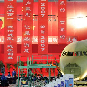 2007年3月30日,中国航空工业可持续发展的决战性项目:拥有自主知识产权的ARJ21新支线飞机启动总装仪式现场。 澎湃资料