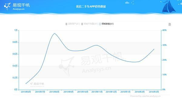 据了解,在第三季《中国好声音》竞标会上,优信以3000万元拍得好声音决赛60秒广告位,之后又以1.8亿元冠名热播综艺节目《奔跑吧兄弟3》。这轮投放效果如何?易观千帆数据显示,2015年8月,在APP领域渗透率上,优信二手车达到全年峰值37.86%,而10月则下跌到26.56%。