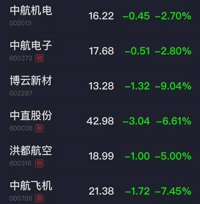 这其中不乏C919首飞的重大标的,如国产飞机龙头中航飞机,C919零部件供应商洪都航空和中直股份,以及提供C919机轮刹车系统的博云新材、承担航电业务的中航电子和提供航空机电系统的中航机电等。而随着消息面利好兑现,这些大飞机概念股午后纷纷跳水。中直股份、航天长峰跌大逾5%、博云新材跌逾4.5%,中航飞机、洪都航空等概念股均现下挫。