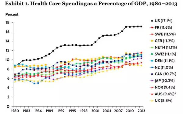 在美国,医疗问题一直是个很严重又敏感的社会问题。每任总统都试图解决它,但是这个问题始终没有得到有效解决,反而有愈演愈烈的态势。根据美国政府2013年的医疗费用报告,美国年人均医疗支出达到8600美元(约合近6万元人民币),美国医疗支出占美国GDP总量的17.1%。而且这个支出比例还在逐年上涨,预计未来数年之内有可能达到美国GDP的20%。