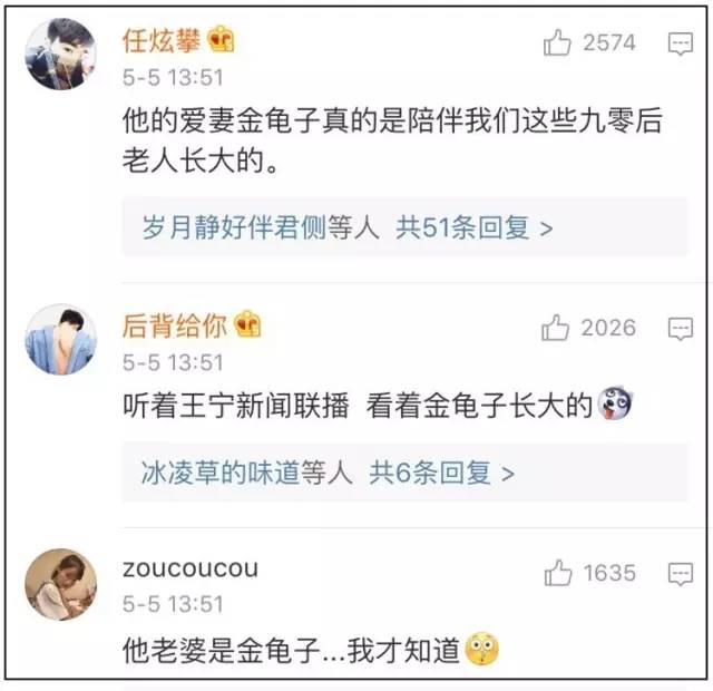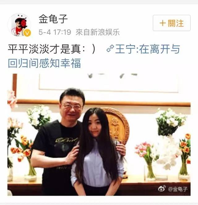 5月4日下午,王宁爱妻、央视著名少儿节目主持人“金龟子”刘纯燕在个人微博转发了相关新闻,并感慨“平平淡淡才是真:)”