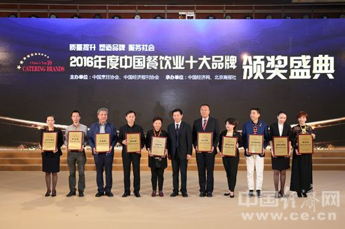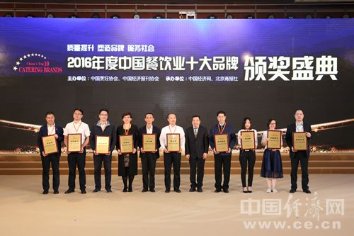 6日,由中国烹饪协会、中国经济报刊协会、中国经济网、北京商报社共同举办“2016年度中国餐饮业十大品牌评选”活动颁奖盛典在北京举行。图为团餐颁奖现场。中国经济网记者李凡/摄