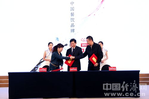 6日,由中国烹饪协会、中国经济报刊协会、中国经济网、北京商报社共同举办“2016年度中国餐饮业十大品牌评选”活动颁奖盛典在北京举行。图为签约现场。中国经济网记者王岩/摄