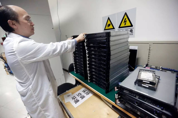 ▲ 工作人员整理机房内的备件。据了解,上海超级计算中心九成以上的资源用于支持多种科研计划。同时,为企业产品研发提供仿真模拟数据,以提高产品质量,也是超级计算机的服务内容。