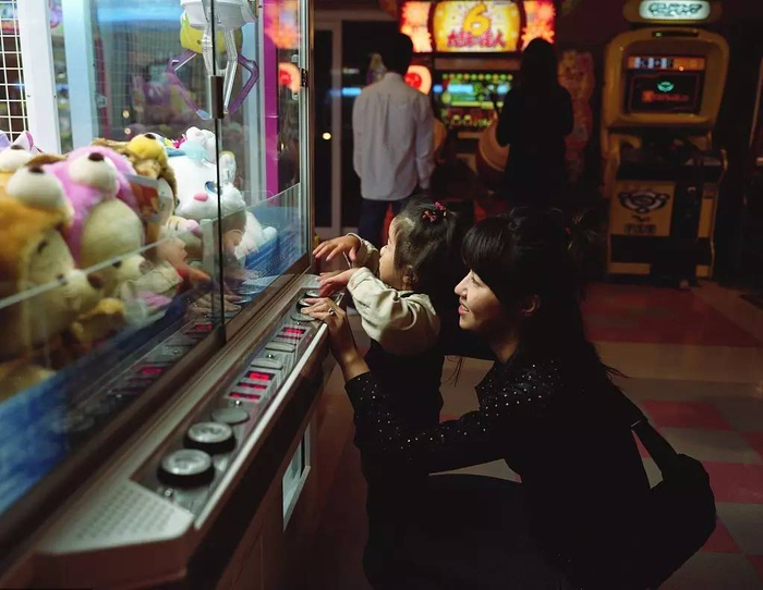 在北京东直门附近的一家大型商场,地下一层与地铁连接的通道摆放了13台抓娃娃机和1台自助兑币机。在彩色灯光的照射下,抓娃娃机里的维尼熊、皮卡丘、海贼王等毛绒玩具显得格外可爱。不少人驻足观看,也有人当即掏钱兑币一试身手。