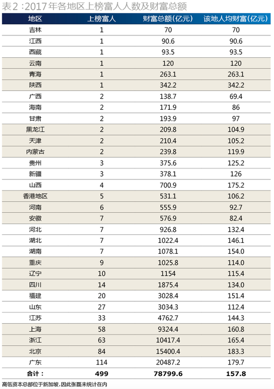 与此同时,还有海南、黑龙江、甘肃、内蒙古、广西、天津6个地区的上榜富豪仅有2位,同样显示当地民营经济活力有待提升。