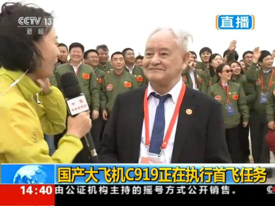 解说:启动、滑行,机头昂起,直插云霄。2017年5月5日下午,上海浦东国际机场,我国首款拥有自主知识产权、具备国际主流水准的干线飞机C919成功首飞。在欢呼庆祝的人群中,87岁的程不时是特意来见证这一时刻的。