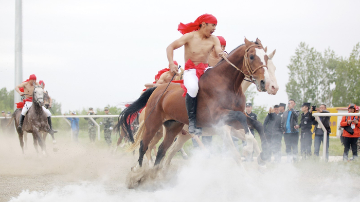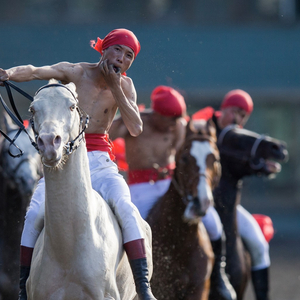 (北京时间记者 杨凯博 陈越绮 刘晓萌)汉武帝曾为获取汗血宝马与大宛国引发战争,如今汗血宝马在全世界依然属于名贵马种,北京时间记者探访全国最大的汗血宝马基地,图为该汗血宝马基地参加著名赛马活动。