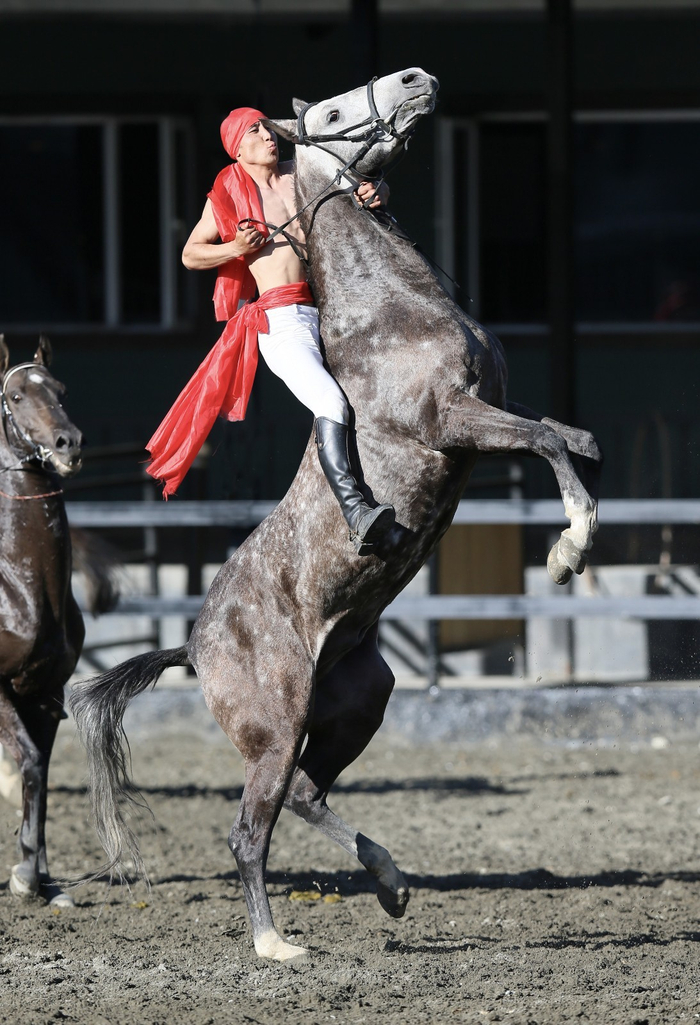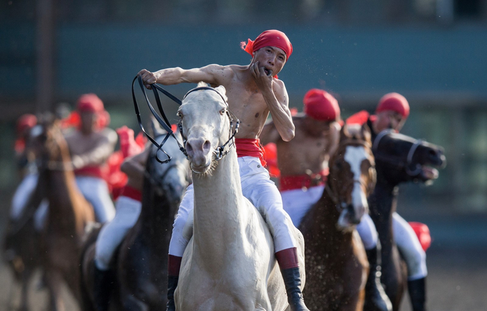 图为汗血宝马精彩赛马表演。
