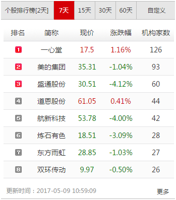 全景网机构调研宝典显示,过去7天内,美的集团(000333)接受了93家机构调研,位列深市个股排行榜第二名,以33家之差紧追一心堂(002727)。