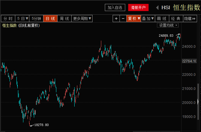 A股正在经历黎明前的黑暗,港股却一路高歌猛进,今日盘中一度涨幅超1%,刷新2015年8月来新高。