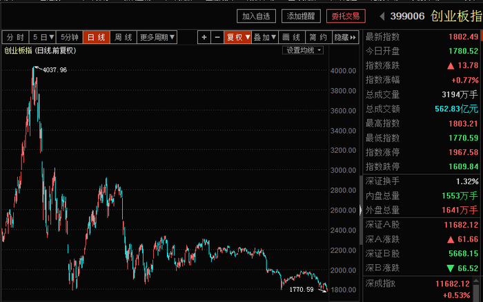 创业板走势放在一个更大的周期来看,今日的最低点1770.59已经回归到了2015年2月。