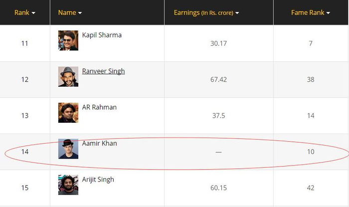 福布斯印度名人榜阿米尔汗个人排名情况