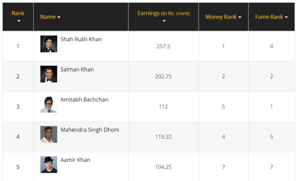 福布斯2016印度名人榜