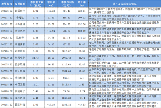 北斗概念公司一季度业绩增长 这五家净利润翻倍