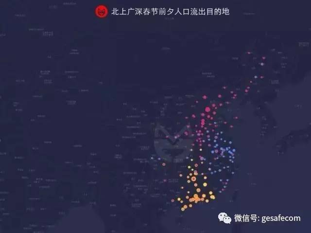 也和前一张图的观点非常类似,珠三角的人回家都是在广州深圳的周边,上海的人回去也集中在长三角。