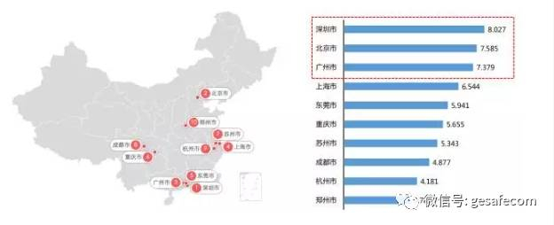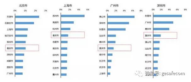 这个数字去年最高的是北京,现在2017年第一个季度变成了深圳,这是一个改变,也代表城市对于外来人口的态度,后面广州和上海的顺序没变,上海排在最末端,这个各位猜到了么?