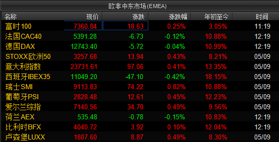 继续看欧非中东市场,涨幅超过10%的几乎涵盖了大部分指数。