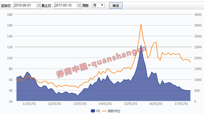 创业板的诟病在于估值太高、上百倍市盈率随处可见,而如今创业板的估值已经发生翻天覆地的变化。下图是创业板近两年的市盈率变化曲线图,图中可以发现:创业板整体市盈率已经从两年前的上百倍的市盈率降至如今的40倍以下。