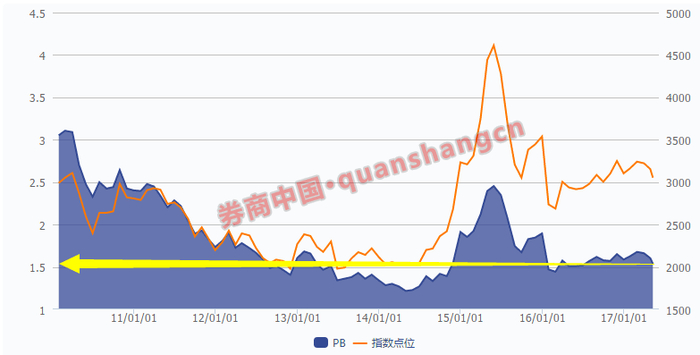 从市净率方面来看,A股市场目前亦处于历史低位。最新数据显示,沪指当前整体市净率为1.54倍。自2010年以来,沪指历史最低市净率为1.22倍,发生于2014年4月。