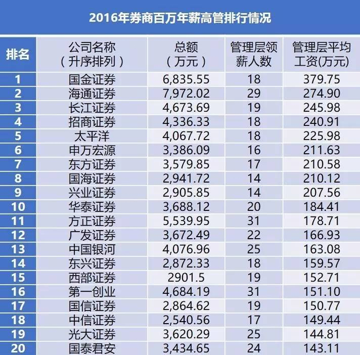 高管平均年薪159.39万元看过员工薪酬的排行,再看看券商高管薪酬。