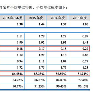 而根据汇仁药业披露的数据显示,2013年-2016年1-6月,汇仁肾宝片的平均单位成本分别是0.2元/片、0.18元/片、0.17元/片、0.18元/片。也就是说每片售价2.55元的汇仁肾宝片,每片的成本不足2毛钱。
